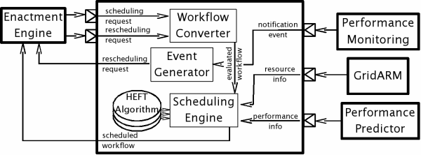 Scheduling Engine is responsible for actual scheduling of the evaluated workflows. It is based on a plug-in architecture, where different scheduling
